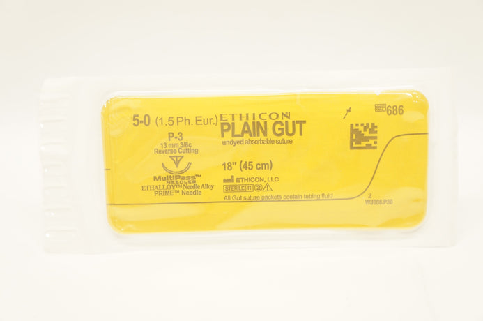 - Ethicon 686 5-0 Plain Gut Absorbable Stre P-3 13mm 3/8c Reverse Cutting, 18inch