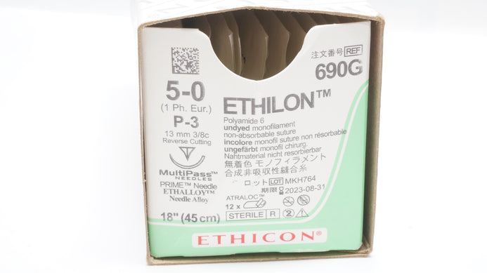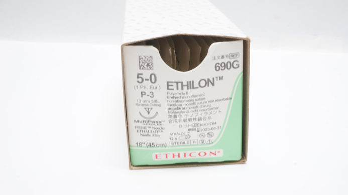 - Ethicon 690G 5-0 ETHILON, P-3, 13mm 3/8c, 18inch Stre. (x) - Box of 10