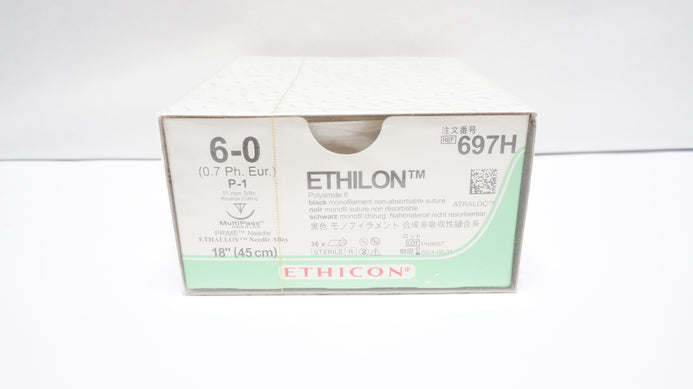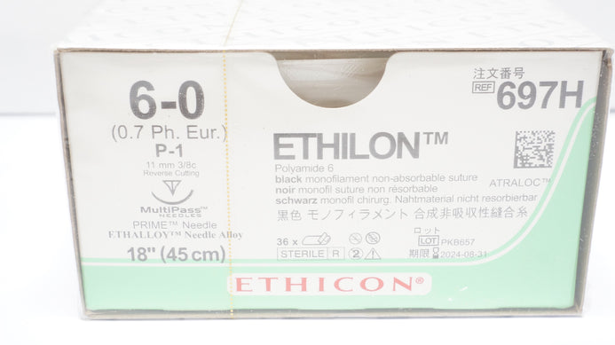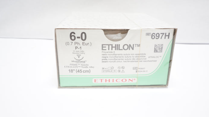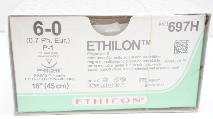 - Ethicon 697H Ethilon Nylon Stre P-1 11mm 3/8c Reverse Cutting 18in -Box of 36(x)