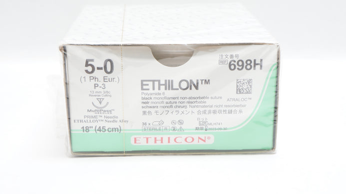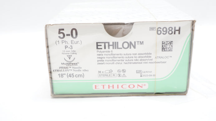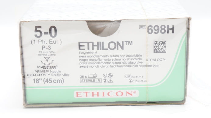 - Ethicon 698H Ethilon 5-0 P-3 13mm 3/8c Reverse Cutting 18In (x) - Box of 36