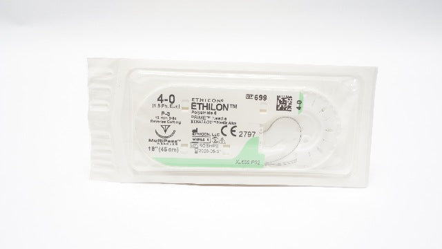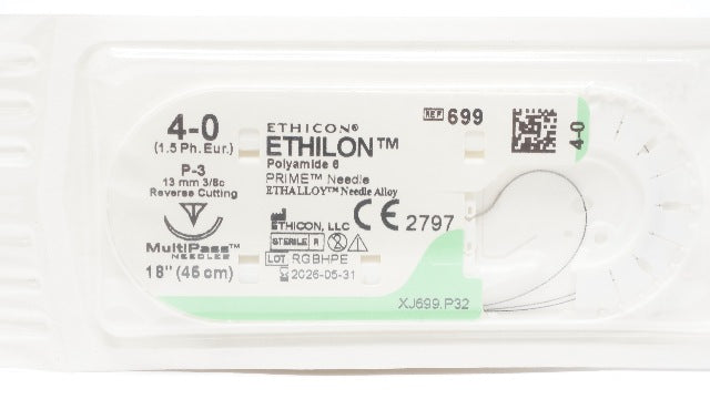 - Ethicon 699 4-0 ETHILON, P-3, 13mm 3/8c Reverse Cutting, 18inch
