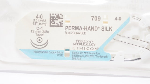 - Ethicon 709 4-0 PERMA-HAND SILK Black Braided Stre C-1 13mm 3/8c Taper, 18inch