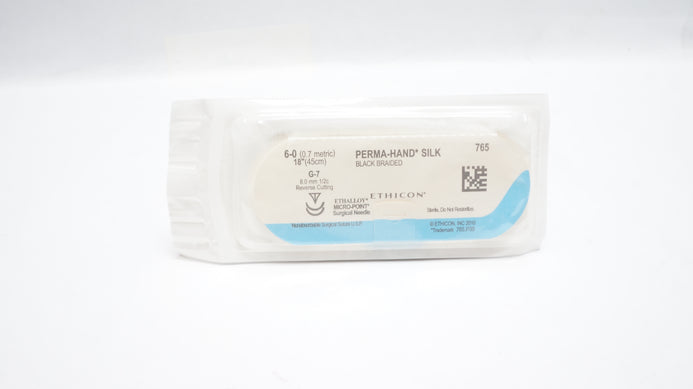 - Ethicon 765 Perma-Hand Silk 6-0 G-7 8.0mm 1/2c Reverse Cutting 18inch (x)