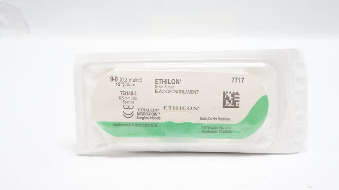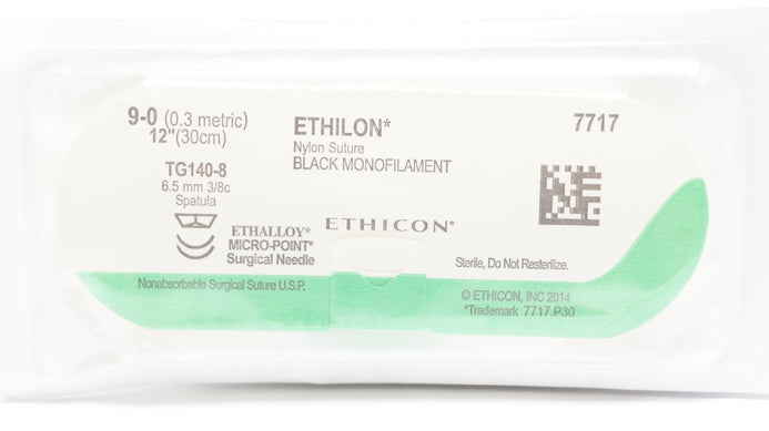 - Ethicon 7717 9-0 ETHILON Nylon Stre TG140-8, 6.5mm 3/8c Spatula, 12inch