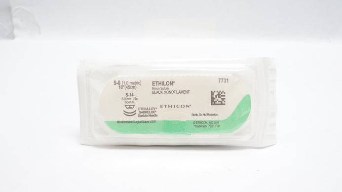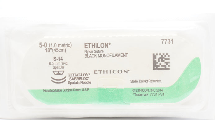 - Ethicon 7731 5-0 Ethilon Nylon, S-14, 8.0mm 1/4c Spatula, 18inch (x)