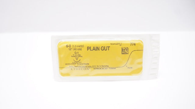 - Ethicon 774 6-0 Plain Gut, G-1, Reverse Cutting 11mm 3/8c, 18inch (x)