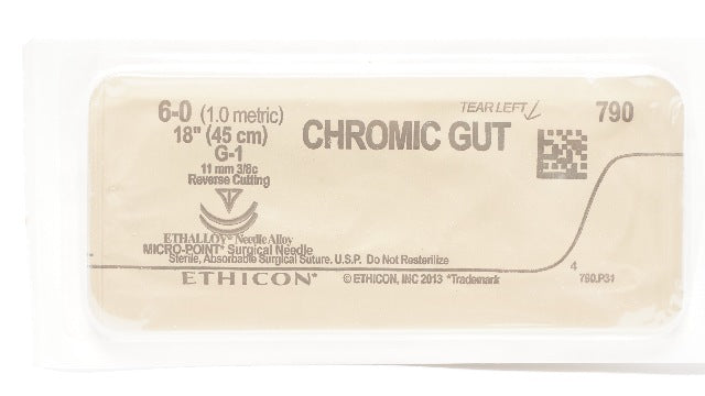 - Ethicon 790 6-0 Chromic Gut SurgicalStre G-1 11mm 3/8c Reverse Cutting 18inch(x)