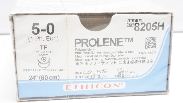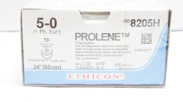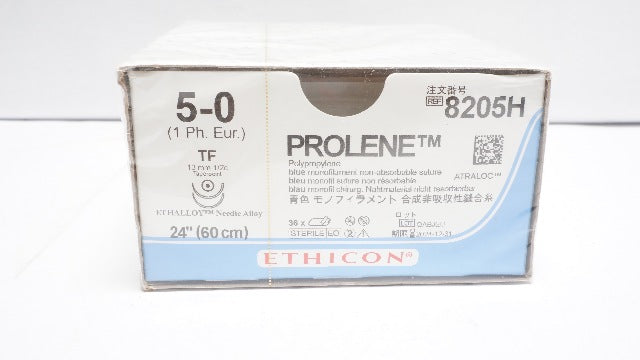 - Ethicon 8205H 5-0 Polyprolene Prolene TF 13mm 1/2c Taperpoint 24In-Box of 36 (x)