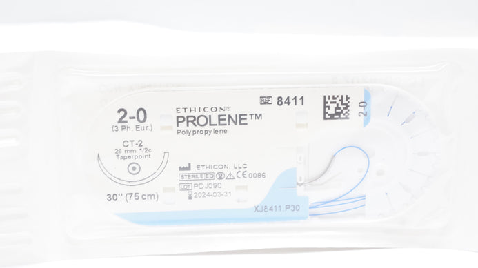 - Ethicon 8411 2-0 PROLENE Polypropylene Stre CT-2 26mm 1/2c Taperpoint, 30inch(x)