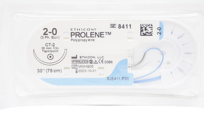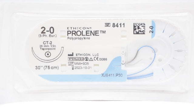 - Ethicon 8411 2-0 PROLENE Polypropylene Stre CT-2 26mm 1/2c Taperpoint, 30inch(x)