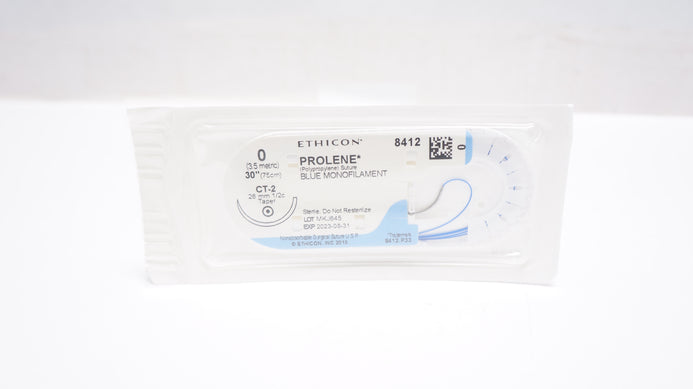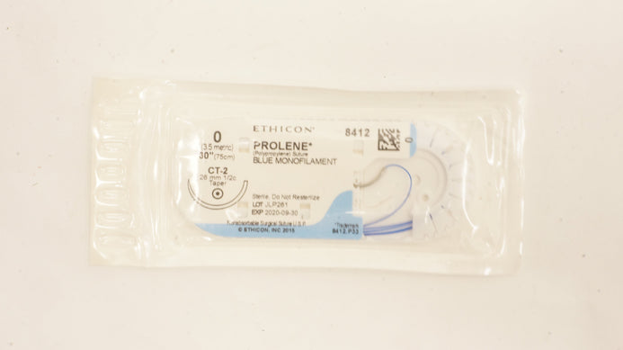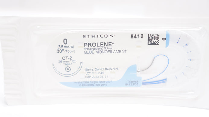- Ethicon 8412 0 PROLENE Polypropylene Stre CT-2 26mm 1/2c Taper, 30 inch (x)