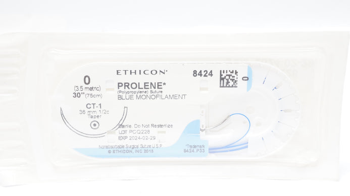 - Ethicon 8424 0 PROLENE Stre, Blue Monofilament CT-1 36mm 1/2c Taper, 30inch (x)
