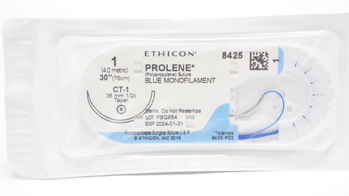 - Ethicon 8425 1 Prolene Polypropylene Stre CT-1 36mm 1/2c Taperpoint, 30 inch (x)