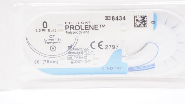 - Ethicon 8434 0 Prolene Stre Blue Monofilament CT 40mm 1/2c Taperpoint, 30inch