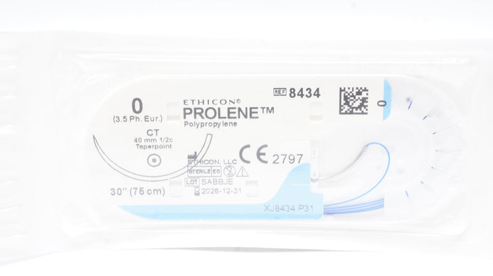 - Ethicon 8434 0 Prolene Stre Blue Monofilament CT 40mm 1/2c Taperpoint, 30inch