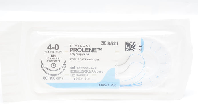 - Ethicon 8521 4-0 Prolene Polypropylene Stre SH 26mm 1/2c Taperpoint 36 inch