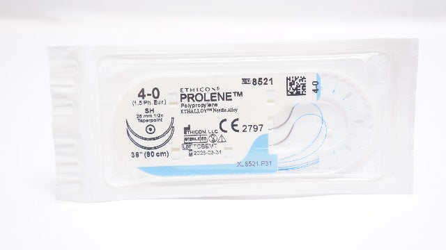 - Ethicon 8521 4-0 Prolene Polypropylene Stre SH 26mm 1/2c Taperpoint, 36inch