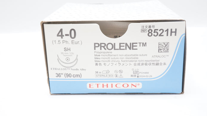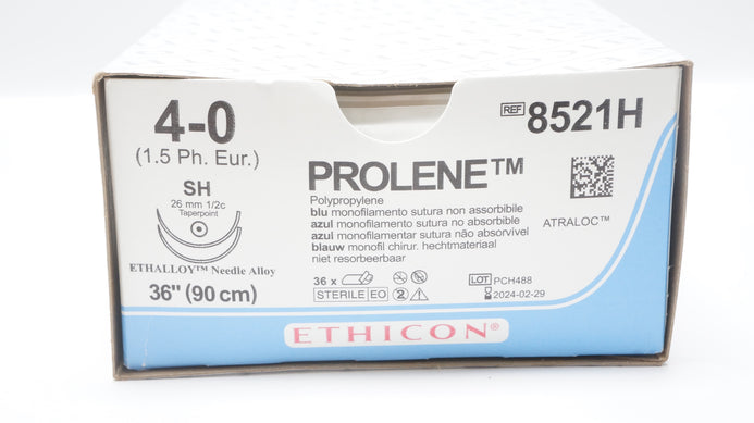 - Ethicon 8521H 4-0 Prolene Stre SH 26mm 1/2c Taperpoint, 36 inch (x) - Box of 36