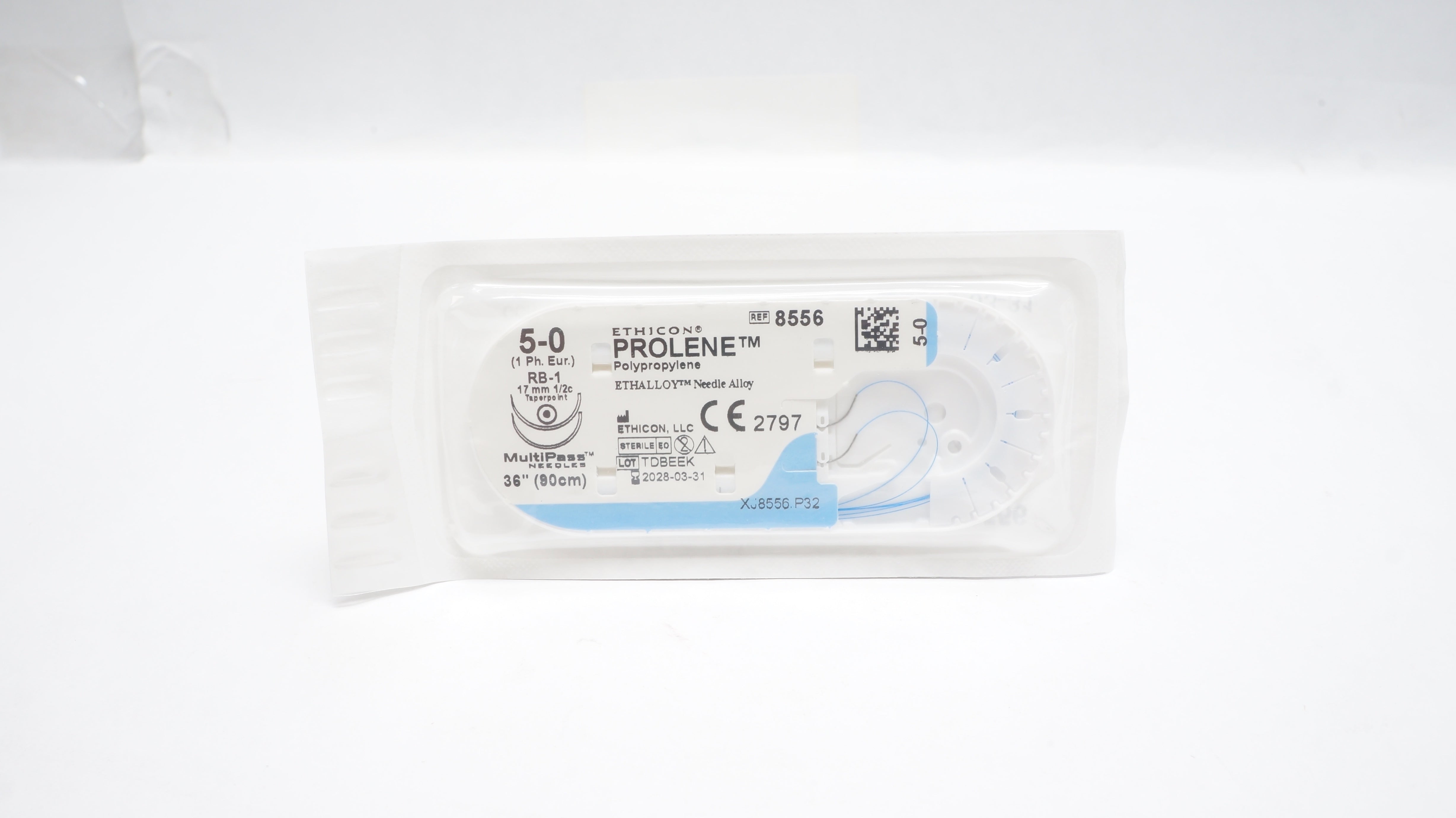 - Ethicon 8556 5-0 PROLENE Polypropylene Stre RB-1, 17mm 1/2c Taperpoint 36inch