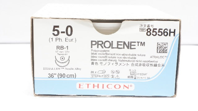 - Ethicon 8556H 5-0 Prolene RB-1 17mm 1/2c Taper 36inch (x) - Box of 20