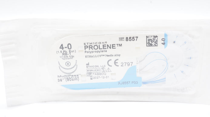- Ethicon 8557 4-0 PROLENE Polypropylene Stre RB-1, 17mm 1/2c Taperpoint, 36inch