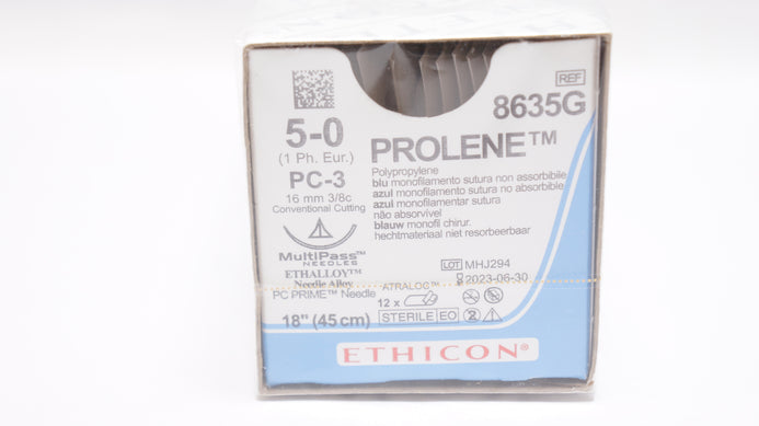 - Ethicon 8635G 5-0 PROLENE PC-3 16mm 3/8c Conventional Cutting 18in(x) -Box of 12