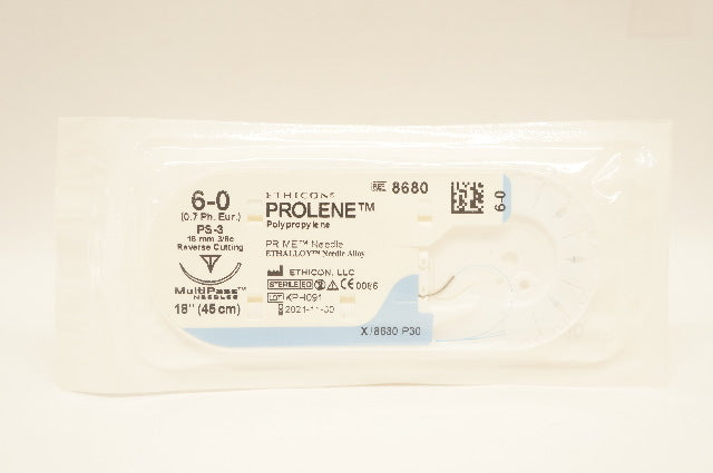 - Ethicon 8680 6-0 Polypropylene Stre PS-3 16mm 3/8c Reverse Cutting 18inch (x)