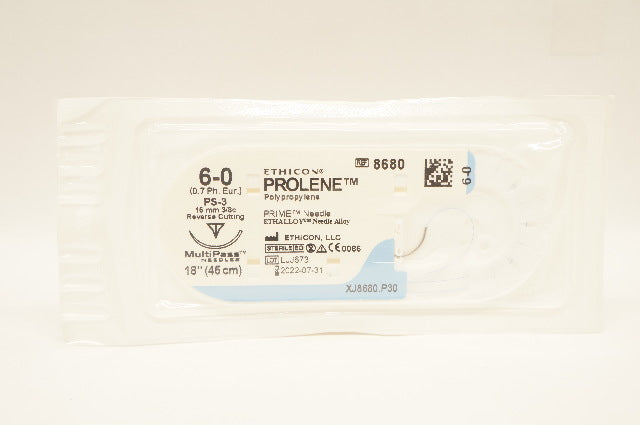 - Ethicon 8680 6-0 Prolene PolypropyleneStre PS-3 16mm 3/8c Reverse Cutting 18inch