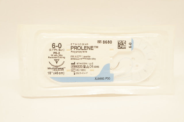 - Ethicon 8680 6-0 ProlenePolypropylene Stre PS-3 16mm 3/8c Reverse Cutting 18inch