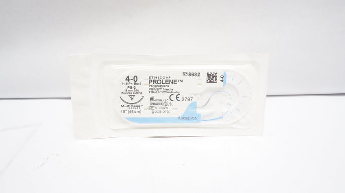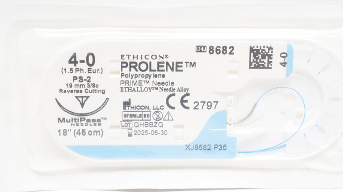 - Ethicon 8682 4-0 PROLENE Polypropylene Stre PS-2 19mm 3/8c ReverseCut. 18in(x)