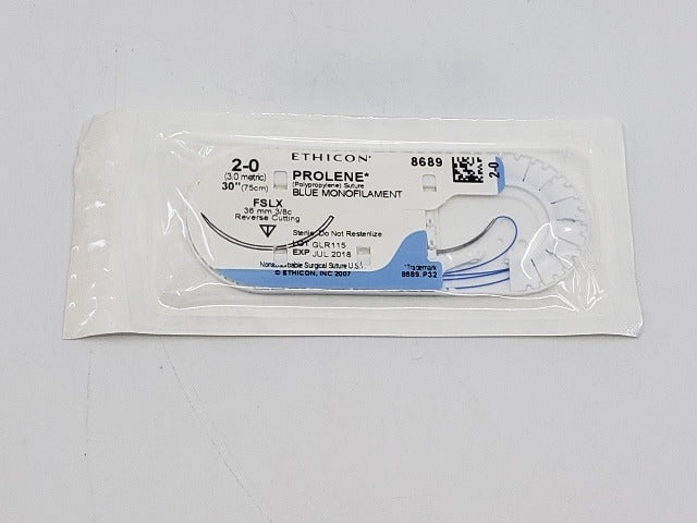 - Ethicon 8689 2-0 PROLENE, FSLX, 36mm 3/8c, 30in. (x)