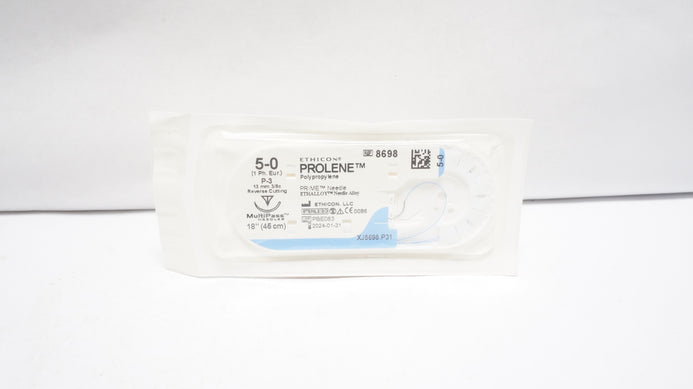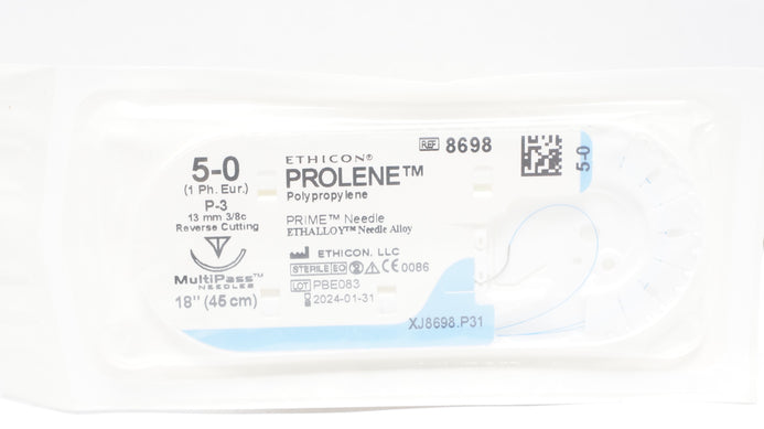 - Ethicon 8698 5-0 PROLENE Stre P-3 13mm 3/8c Reverse Cutting 18inch (x)