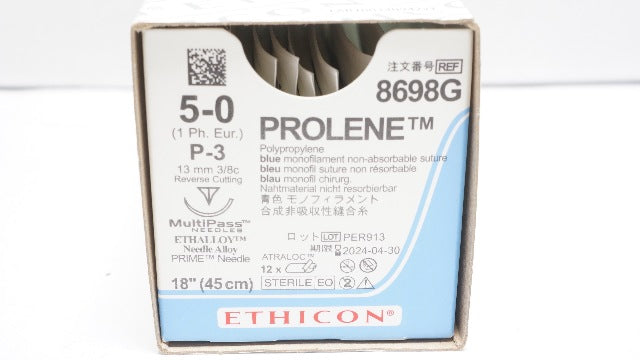 - Ethicon 8698G 5-0 PROLENE Stre P-3 13mm 3/8c Reverse Cutting 18 in. (x)-Box of 8