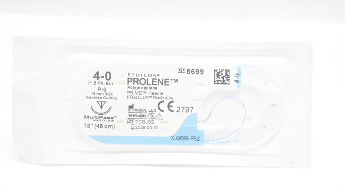 - Ethicon 8699 4-0 PROLENE Stre P-3 13mm 3/8c Reverse Cutting 18inch (x)