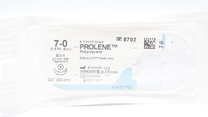 - Ethicon 8702 7-0 PROLENE, BV-1, 9.3mm 3/8c Taperpoint, 24inch (x)