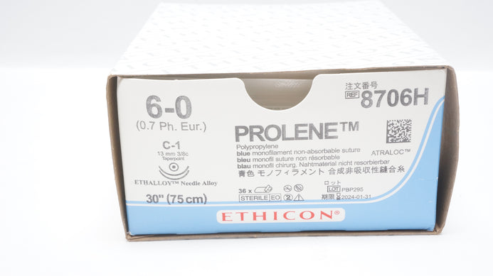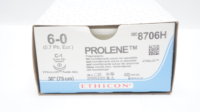 - Ethicon 8706H 6-0 PROLENE Stre C-1 13mm 3/8c Taperpoint 30inch (x) - Box of 36