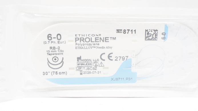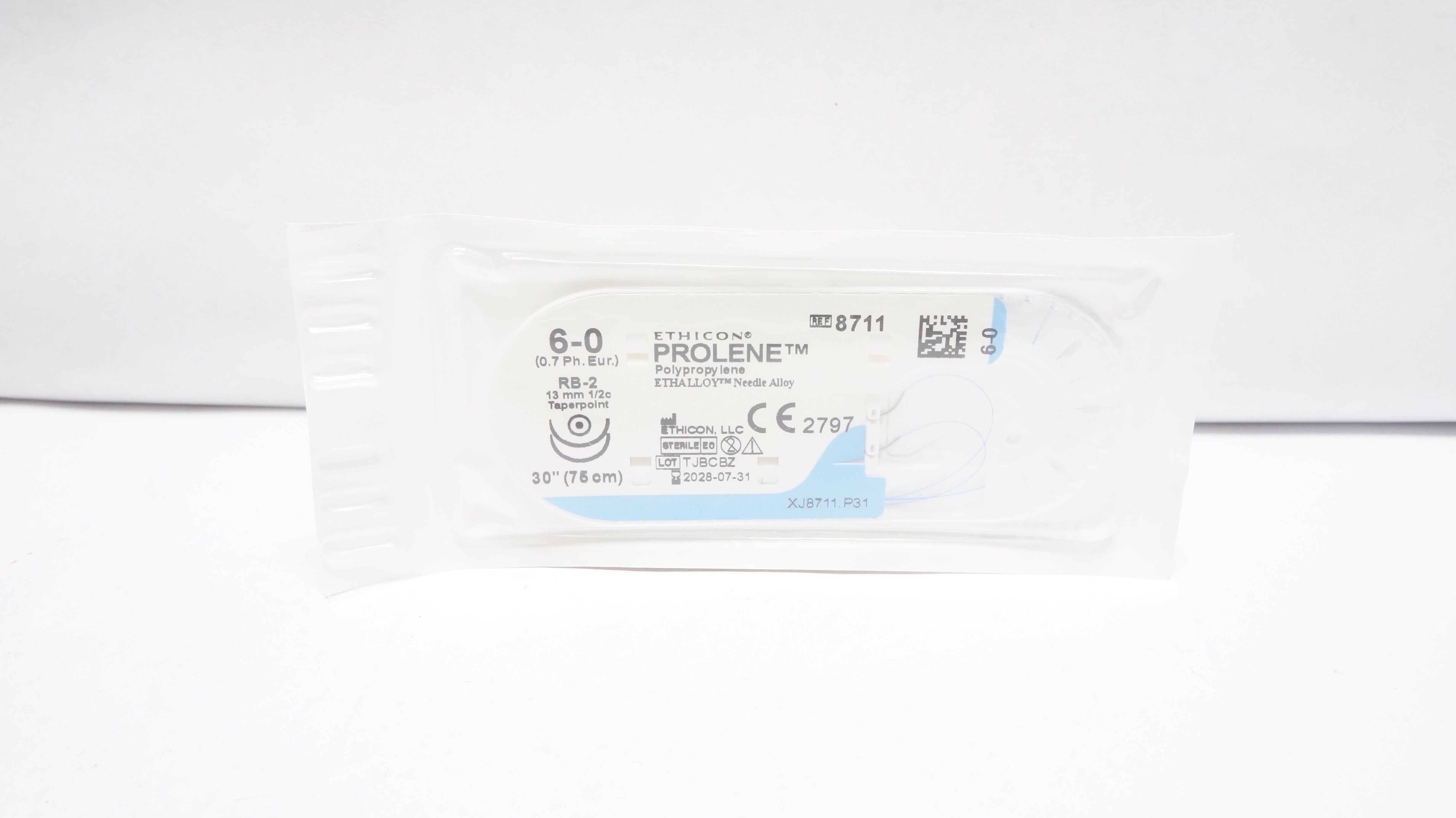 - Ethicon 8711 6-0 PROLENE Polypropylene Stre RB-2 13mm 1/2c Taperpoint 30inch