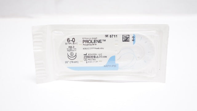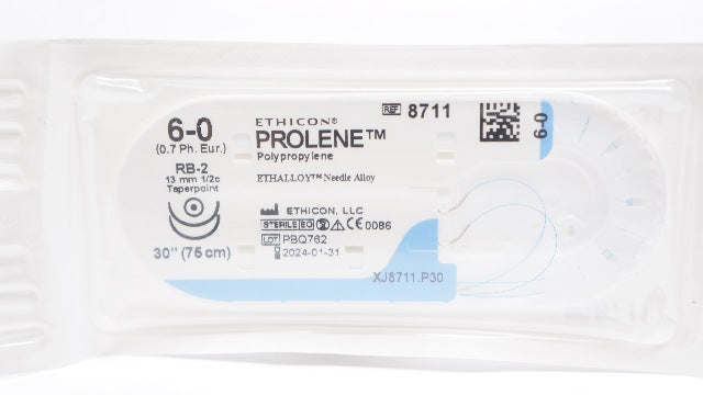 - Ethicon 8711 6-0 PROLENE Polypropylene Stre RB-2 13mm 1/2c Taperpont, 30inch (x)