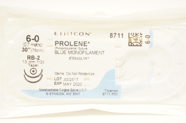 - Ethicon 8711 6-0 PROLENE, RB-2, 13mm 1/2c Taper, 30inch (x)