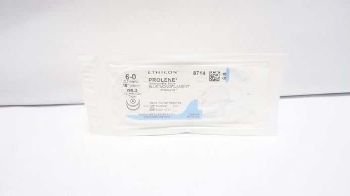 - Ethicon 8714 6-0 PROLENE, RB-2, 13mm 1/2c Taper, 18inch (x)