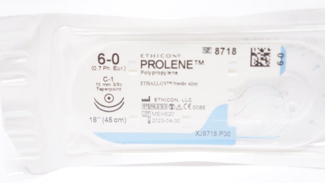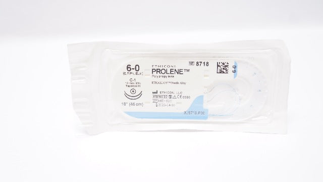 - Ethicon 8718 6-0 PROLENE Polyproylene Stre C-1 13mm 3/8c Taperpoint, 18inch (x)