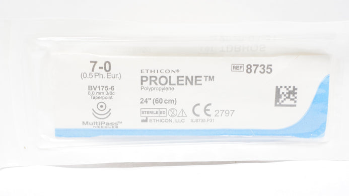 - Ethicon 8735 7-0 Prolene Polypropylene Stre BV175-6 8mm 3/8c Taperpoint 24inch