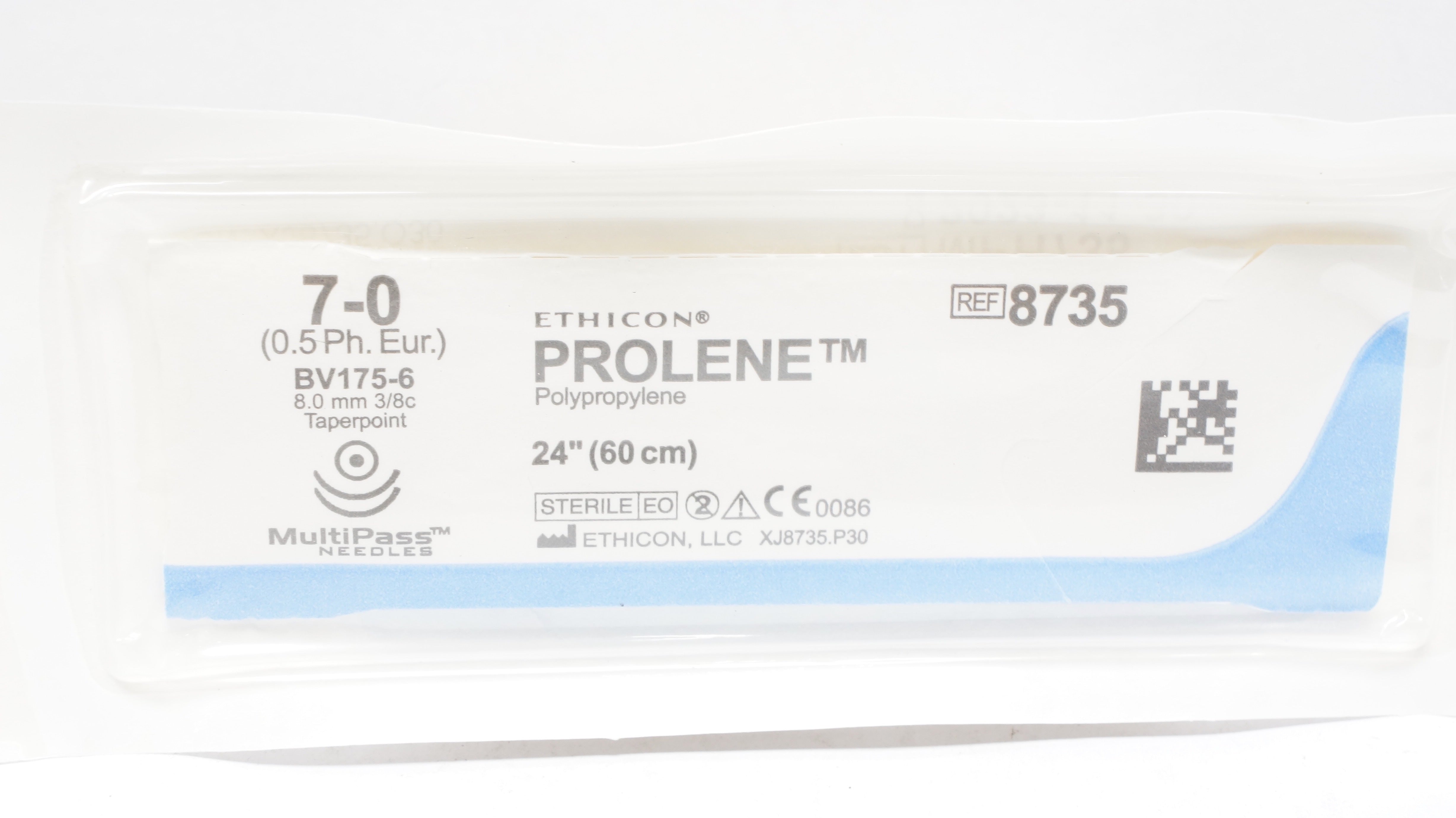 - Ethicon 8735 7-0 Prolene PolypropyleneStre BV175-6 8mm 3/8c Taperpoint 24inch(x)