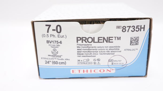 - Ethicon 8735H 7-0 Prolene BV175-6 8.0mm 3/8c Taperpoint 24In - Box of 36 (x)