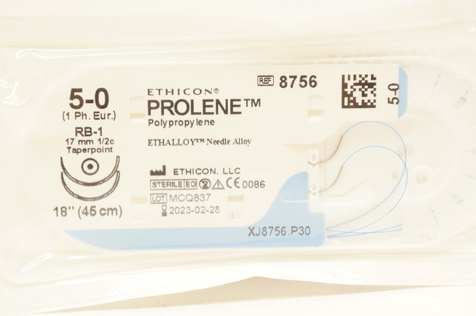 - Ethicon 8756 5-0 PROLENE, RB-1, 17mm 1/2c Taperpoint, 18inch