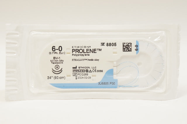 - Ethicon 8805 6-0 PROLENE Polypropylene Stre BV-1 9.3mm 3/8c Taperpoint, 24inch
