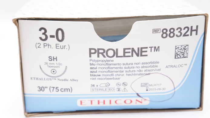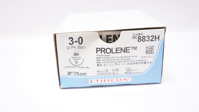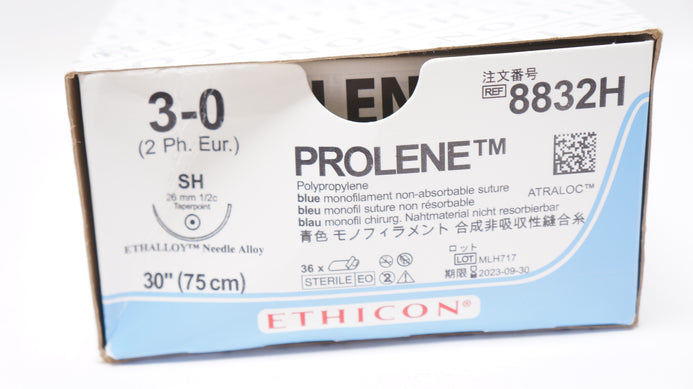 - Ethicon 8832H 3-0 Prolene Polyprolene SH 26mm 1/2c Taperpoint 30In-Box of 30 (x)
