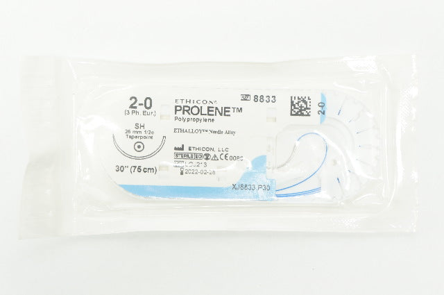 - Ethicon 8833 2-0 Prolene Polypropylene Stre SH 26mm 1/2c Taperpoint 30inch (x)
