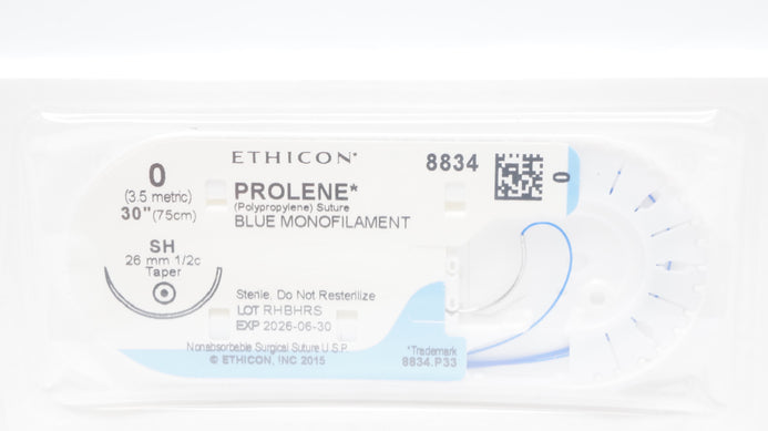 - Ethicon 8834 0 PROLENE Polypropylene Stre SH 26mm 1/2c Taper, 30inch