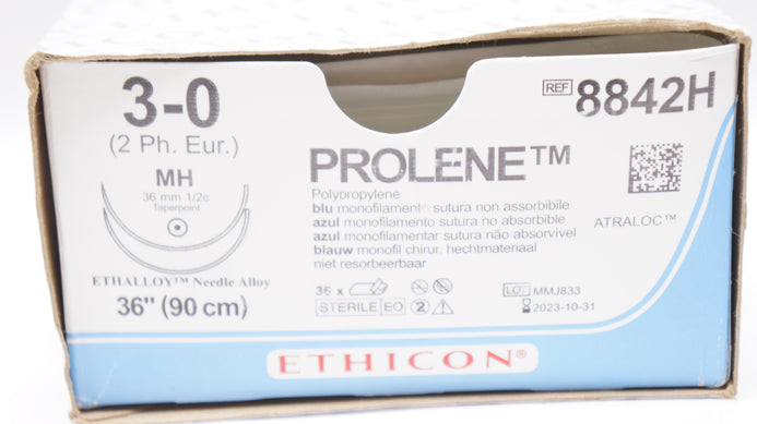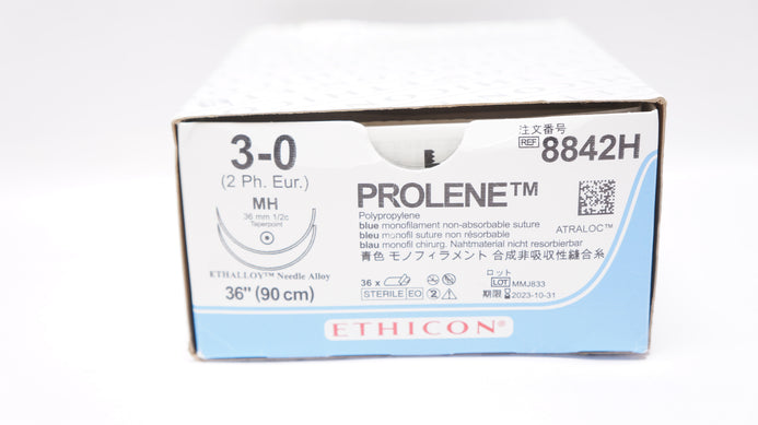 - Ethicon 8842H 3-0 PROLENE, Blue MH 36mm 1/2c Taper, 36In - Box of 33 (x)